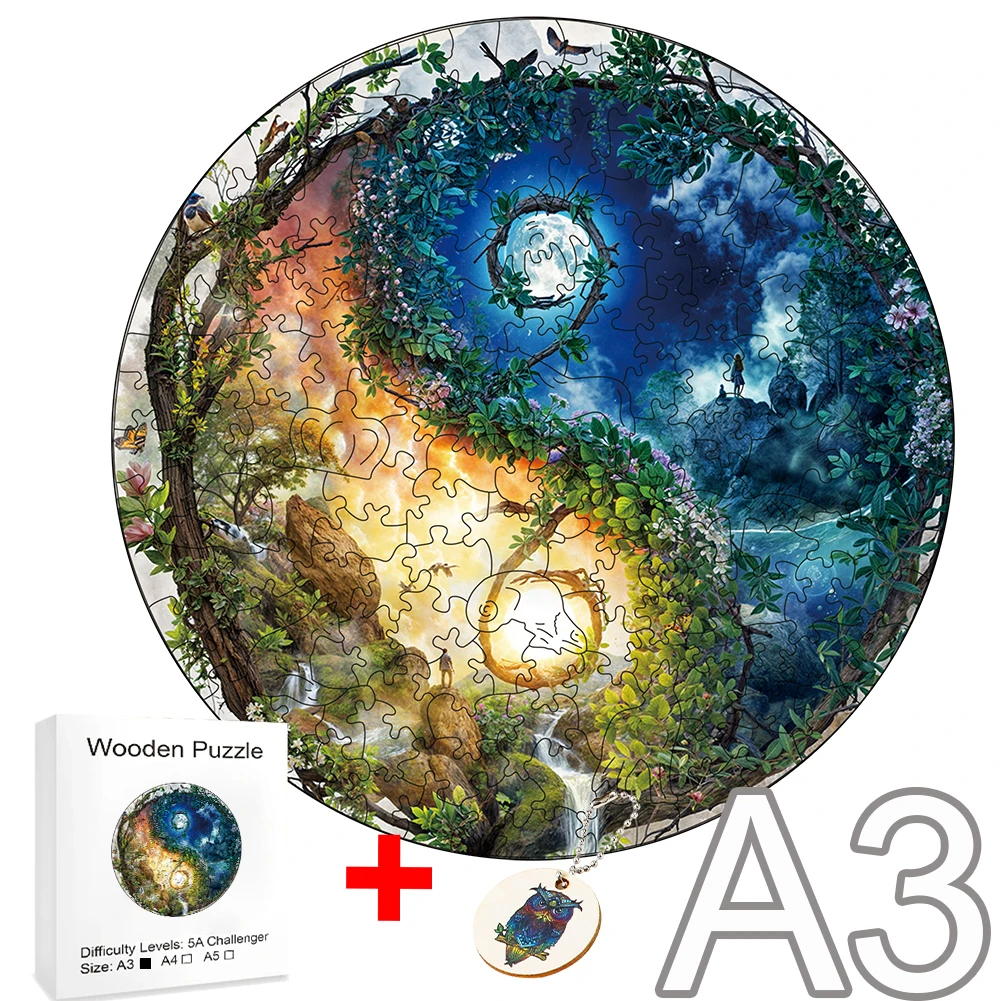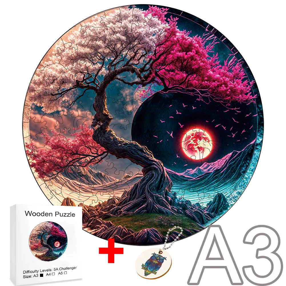 Tree Flower TaiChi Wooden Puzzle Animals Wood Educational Gift for Kids Toys Parent Child Interaction Brain Trainer Jigsaw Diy